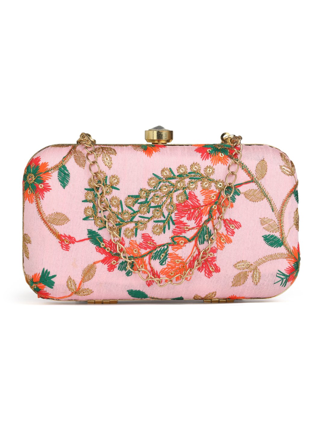 Pink & Green Embroidered Box Clutches For Girls and womens